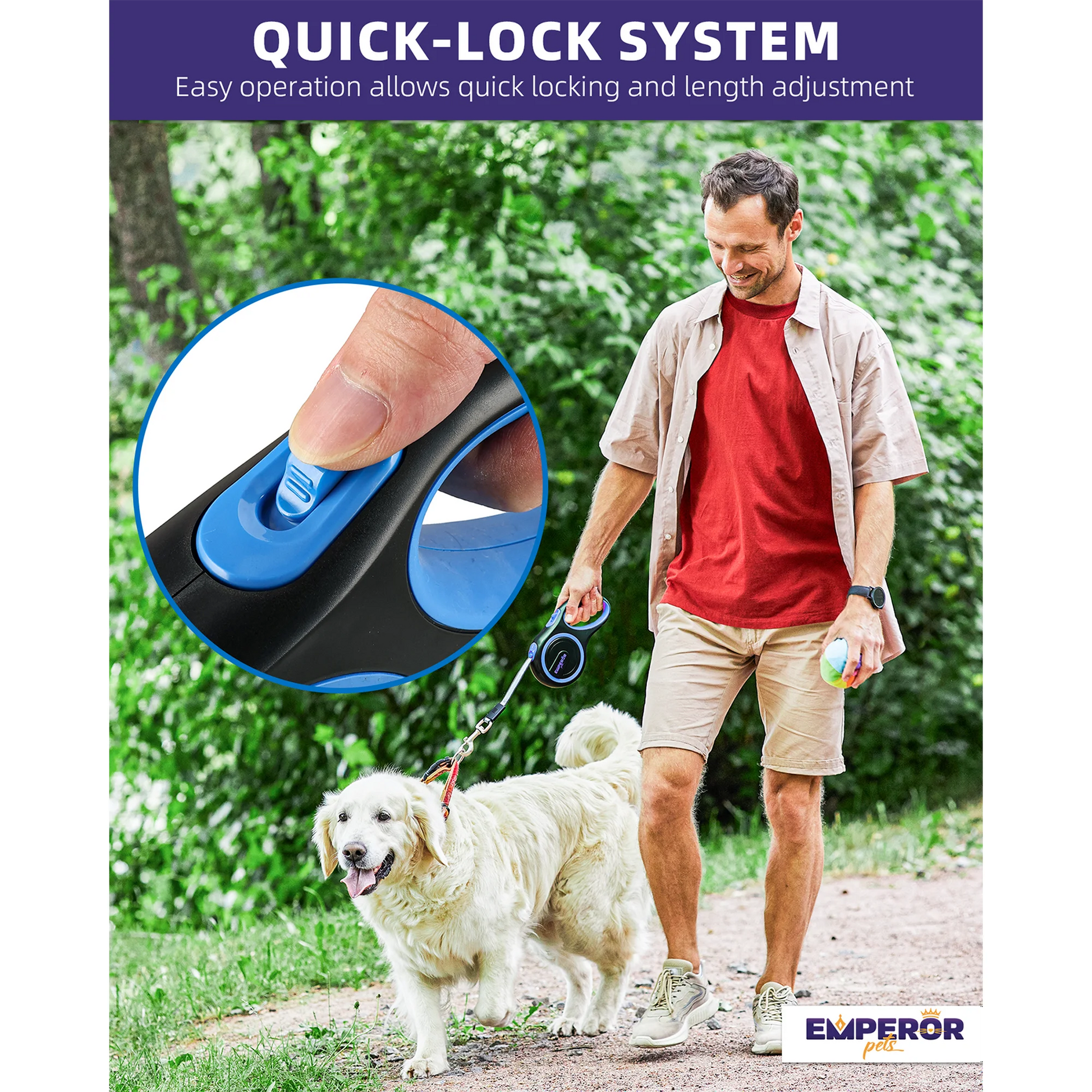 Emperor Pets 26 ft Retractable Dog Leash for Large Dogs (Blue)